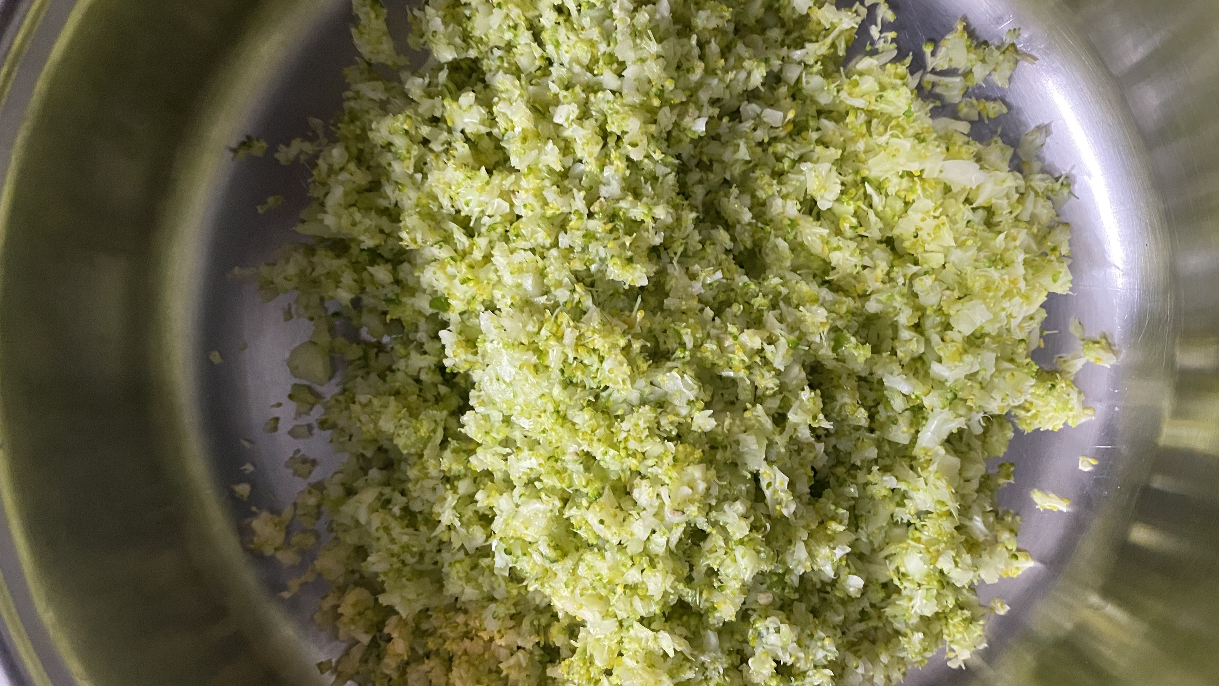 - Next, in a food processor or chopper, blitz together the broccoli florets, green chili and peeled garlic cloves until finely chopped.